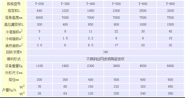 產(chǎn)品用途:本裝置適用于制藥、食品、輕工化工等行業(yè)的稀酒精回收。也適用于甲醇等其它溶媒的蒸餾。本裝置根據(jù)用戶的要求,可將30%左右的稀酒精蒸餾至90度—95度酒精、成品酒精,度數(shù)要求再高,可加大回流比,單產(chǎn)量就相應(yīng)減少。